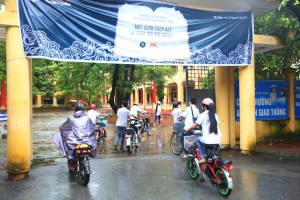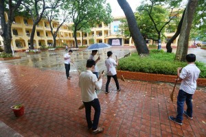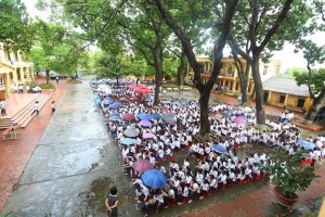 Mặc dù trời lất phất mưa và ai nấy đều lo lắng vì sự kiện được tổ chức ngoài trời nhưng công tác chuẩn bị cho sự kiện vẫn được triển khai từ sáng sớm trong bầu không khí hào hứng, khẩn trương. Hàng trăm thầy cô giáo cùng các em học sinh đã tham gia dọn rác, quét lá cây, kê bàn ghế.. như những chú kiến thợ. “Trời đã không phụ lòng người” – anh Hoàng Trọng Giang (Bí thư đoàn trường THPT Thái Thuận, Bắc Giang) hồ hởi nói khi đúng 8 giờ, mưa tạnh hẳn, trời hửng nắng và các chương trình của sự kiện vẫn diễn ra theo đúng lịch trình.